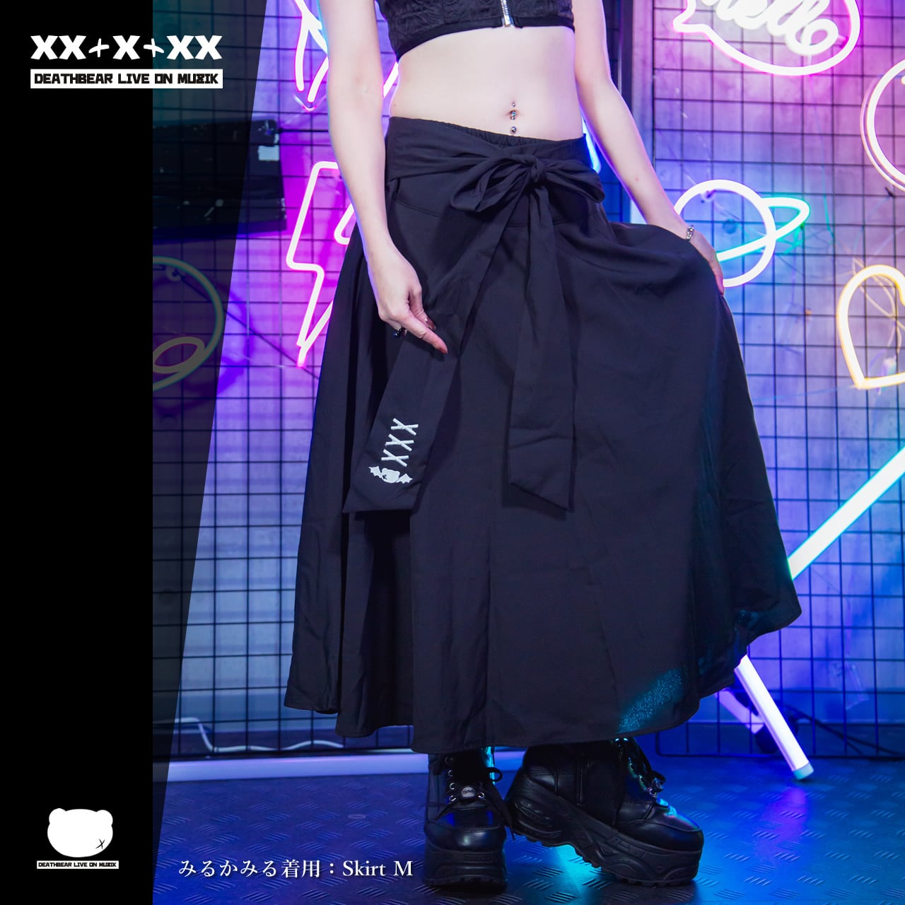 リボンは脇に縫い付けられていて、結びぐあいでウエストの調整が可能です。