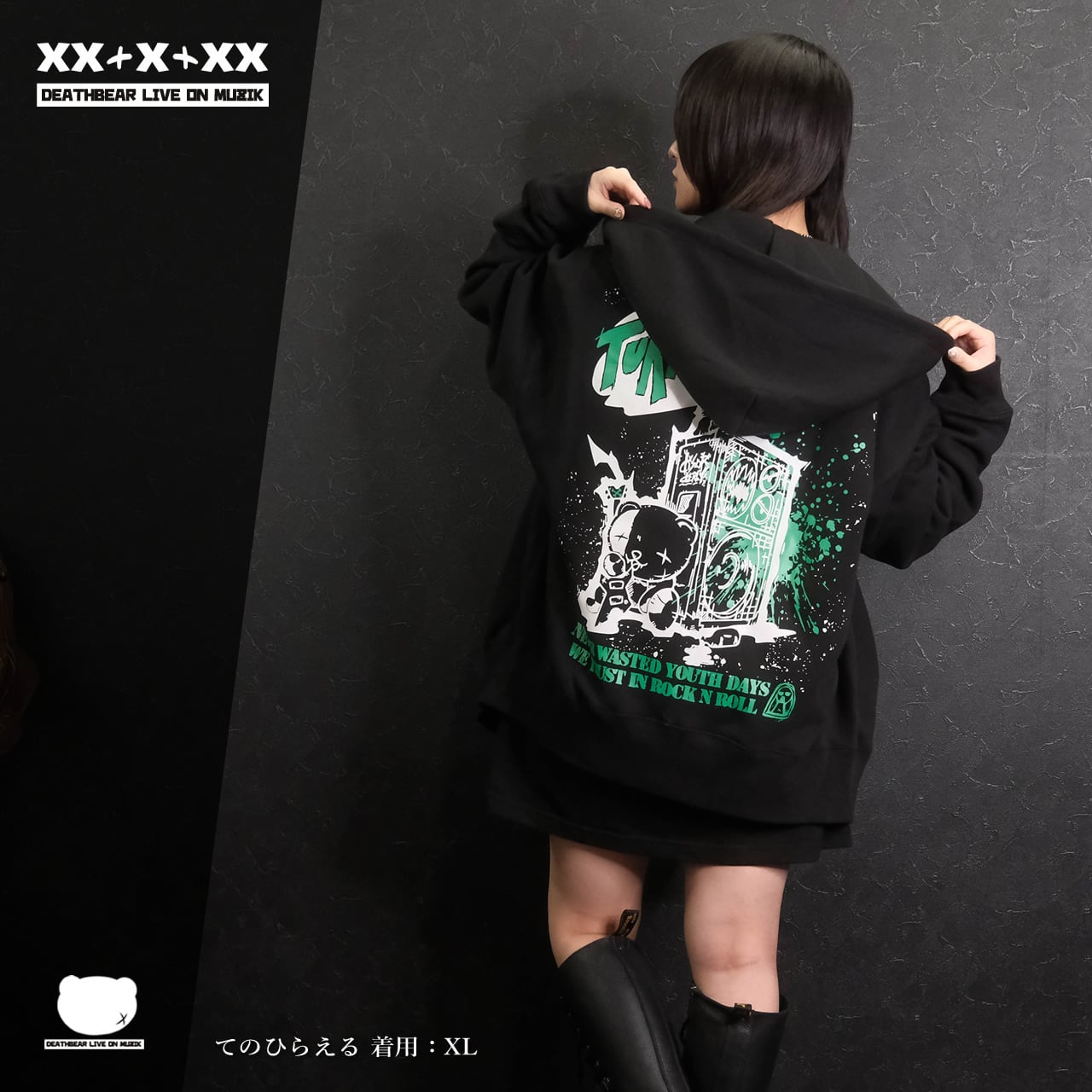 短丈がトレンドになっている時流に合わせ、身幅・肩幅は広めで身丈は短めという絶妙なボックスシルエットに仕上げたジップ パーカ。