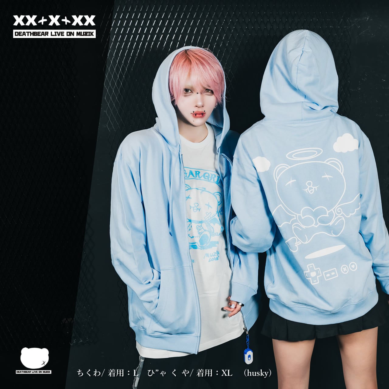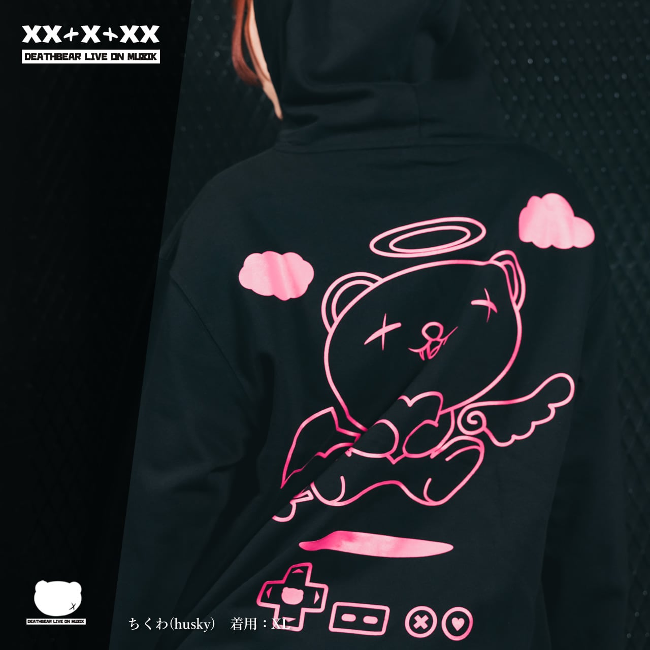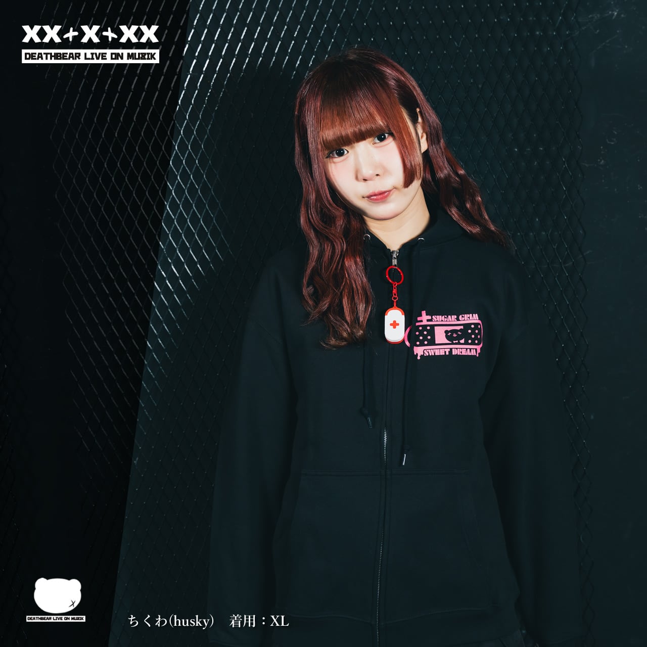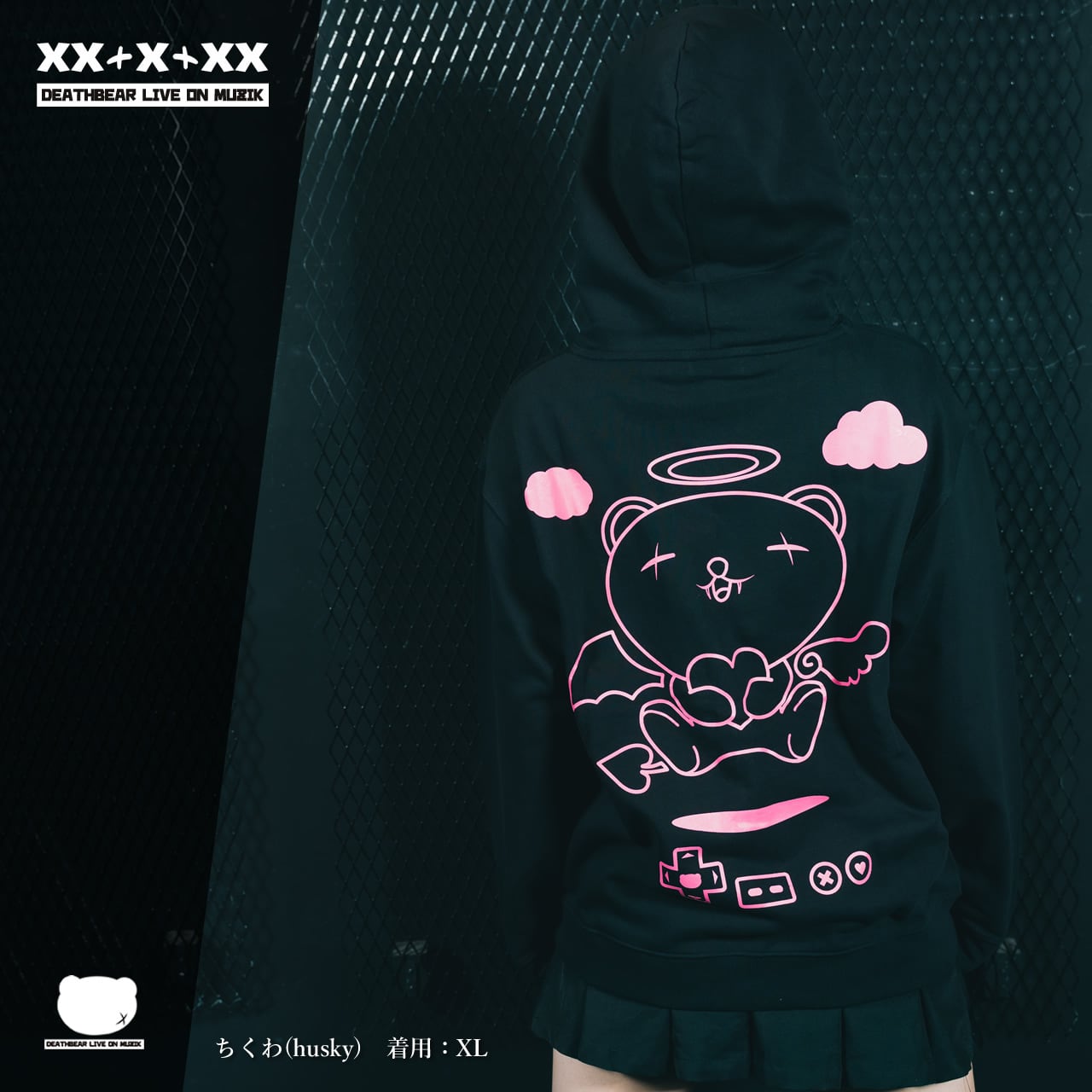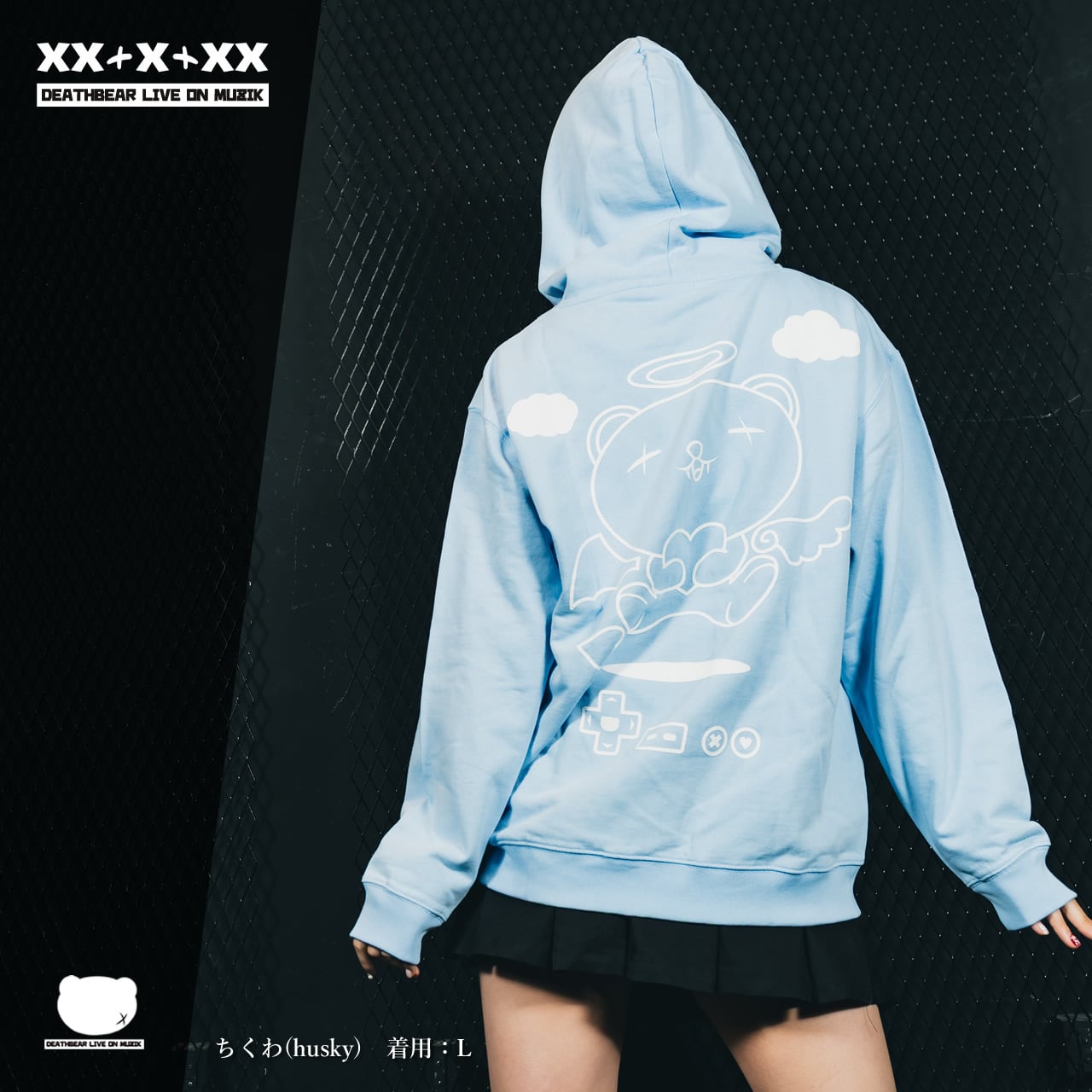 胸にはバンソーコーモチーフのイラストと、背面には入院のお共にふわふわゲーム風イラスト。