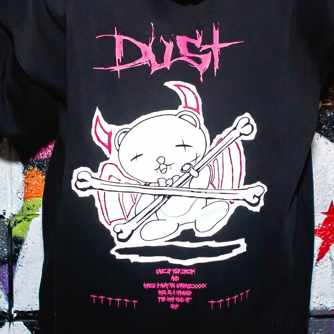 1.右手首の袖に、デスベアの目・頬をイメージしたバツ印リボンを縫い付け